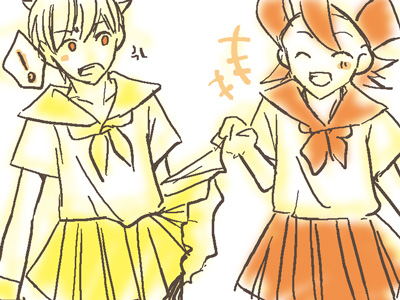 合意の上でないセクハラはこんな感じであろうかと絵にしてみました。スパッツを履いているからめくっても大丈夫。しかしこのあと確実に閻魔は刺されます。