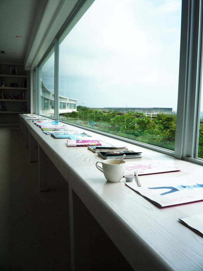 図書館のようになっていて、宿泊できる部屋も含め全てオーシャンビュー。