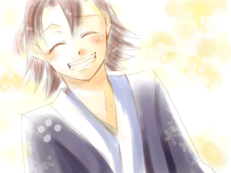 ビジネスホテルで置いてある浴衣ってストライプってか縦じまだなあ。というわけで鬼.男君に着せてみました。