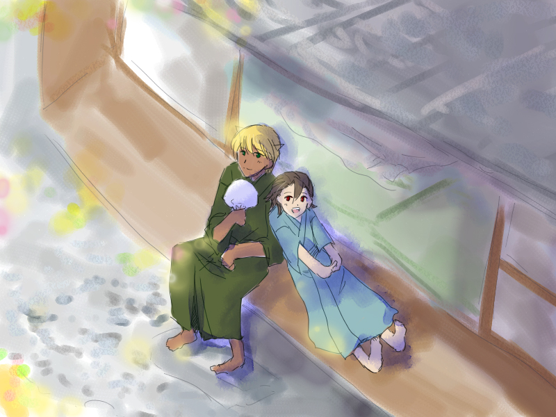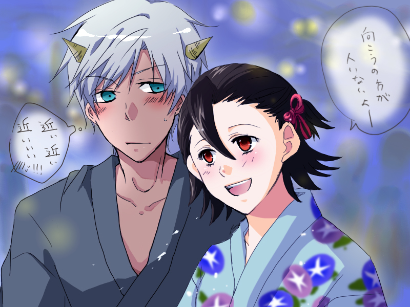 閻/魔描いて渡したのは昨日、今日鬼/男君がくっついて(カラーになって)戻ってきました。あまりの萌えに錯乱しました。ありがとうございます!