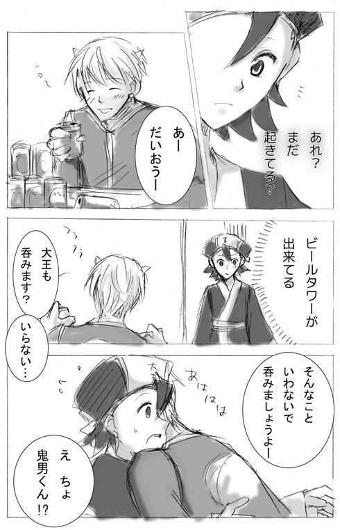呑んだくれてベタベタしてくる鬼男もいいのではと思って描きました。少女漫画になるのはもはや仕様。…すいません、なんとかしたいと思ってます。
